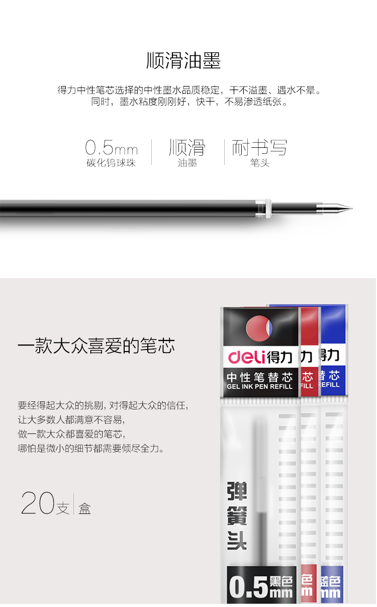 • 商品名稱:得力按動中性筆芯 6906 0.5mm 黑色(kj)