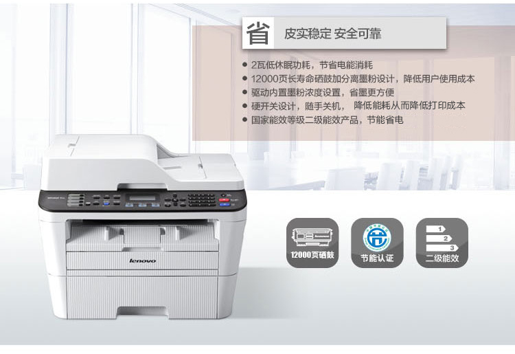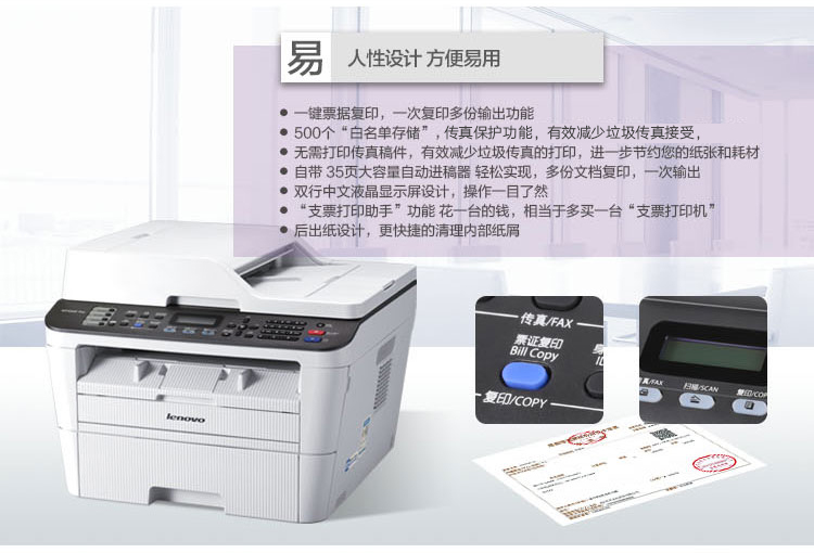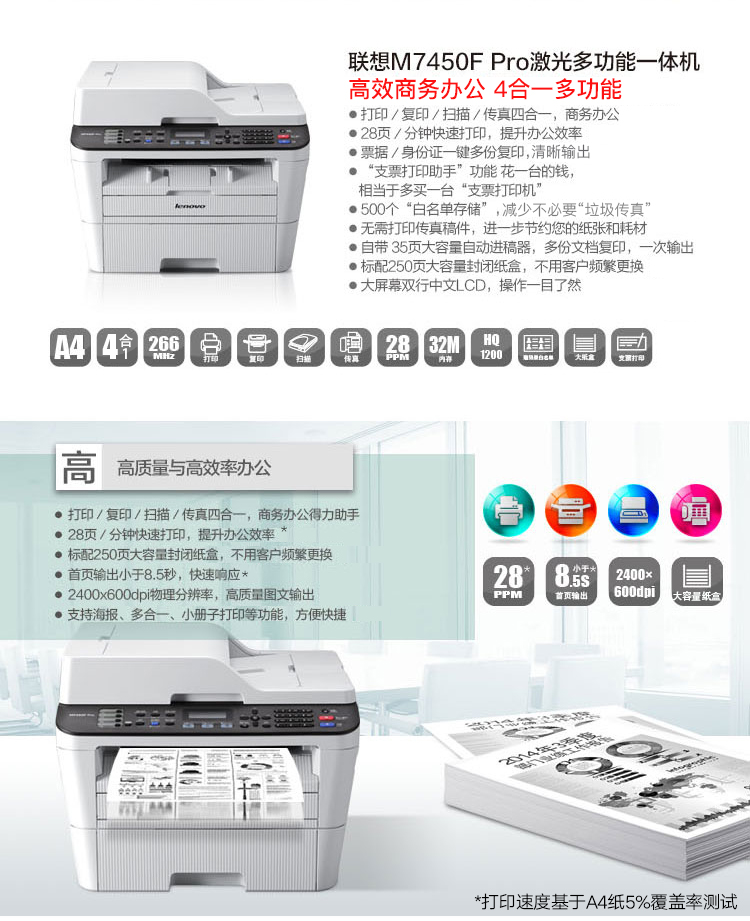 聯(lián)想(Lenovo) M7450F A4幅面四合一黑白激光多功能一體機(jī) (打印/復(fù)印/掃描/傳真)不支持網(wǎng)絡(luò)打印 手動(dòng)雙面打印
