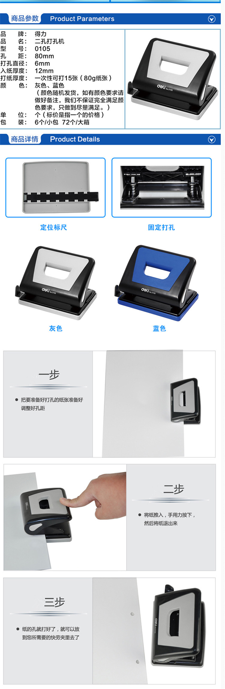 • 商品名稱:得力 兩孔打孔機(jī) 0105 15頁/80g 混色 (kj)