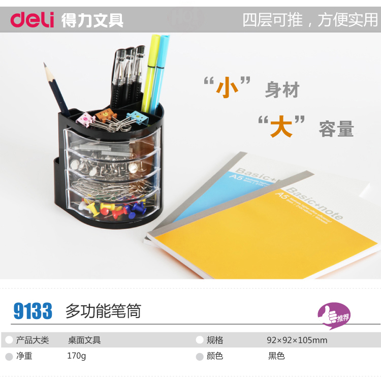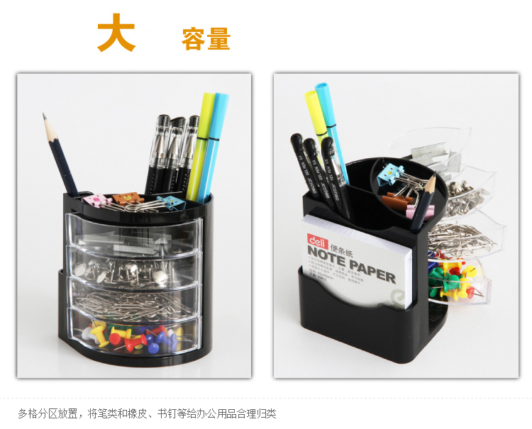 • 型號(hào):得力(deli) 筆筒 9133 豪華型多功能筆座時(shí)尚 辦公桌面塑料筆筒