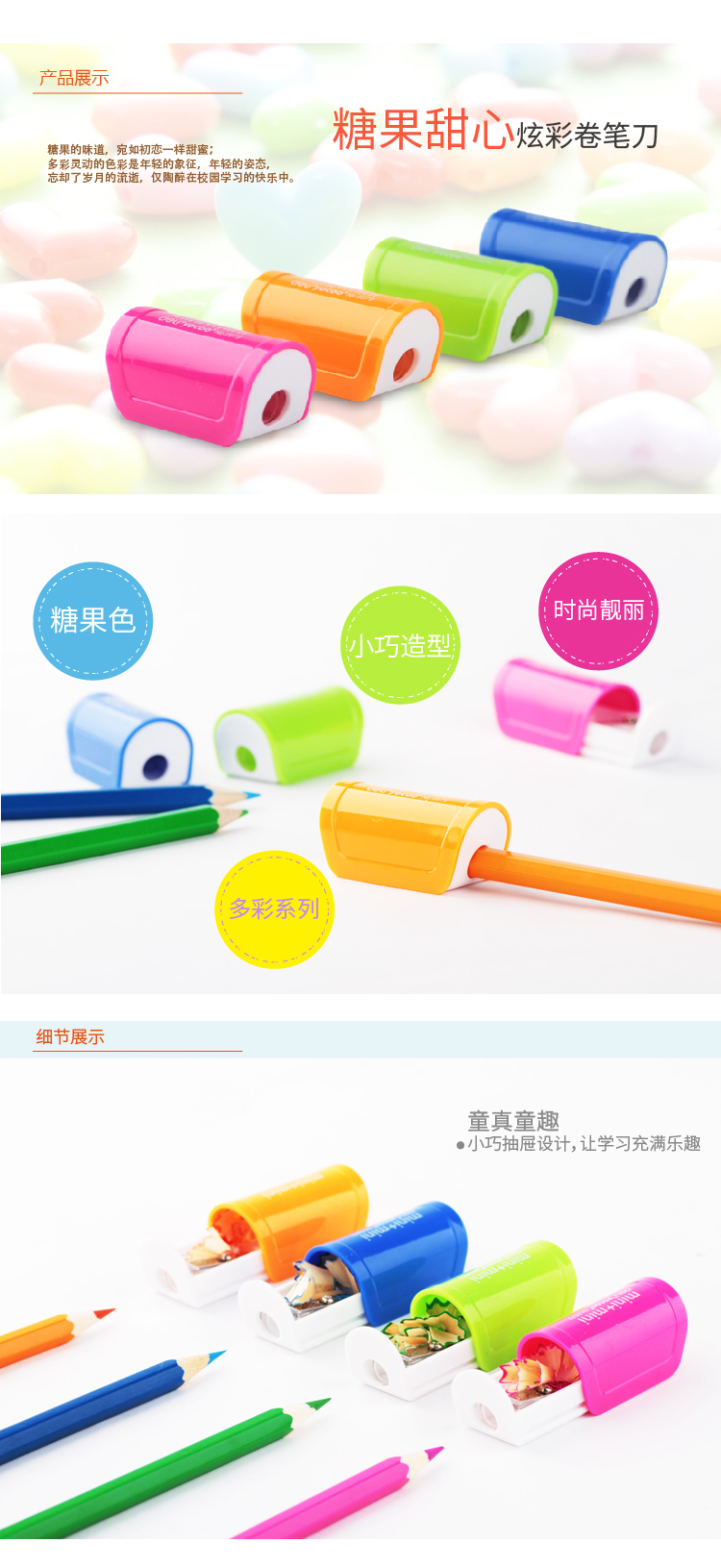• 商品名稱:得力(deli) 0545 時(shí)尚靚彩抽屜式卷筆刀 24只/筒(kj)