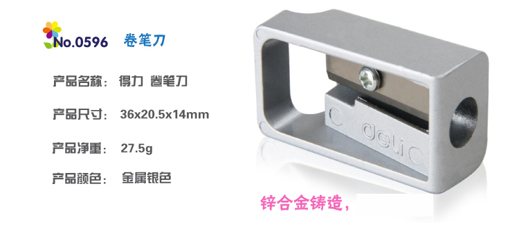 • 商品名稱:得力(Deli) 卷筆刀 0596 單孔 銀色 (kj)