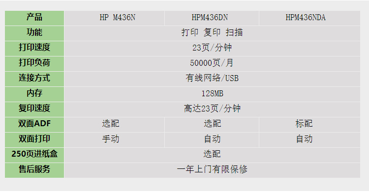 • 商品名稱:惠普(HP)M436dn A3黑白多功能一體機打印/復(fù)印/掃描/高達23頁/分鐘/一年保修