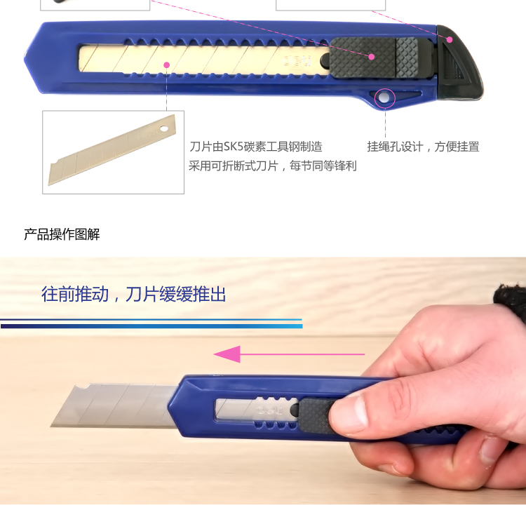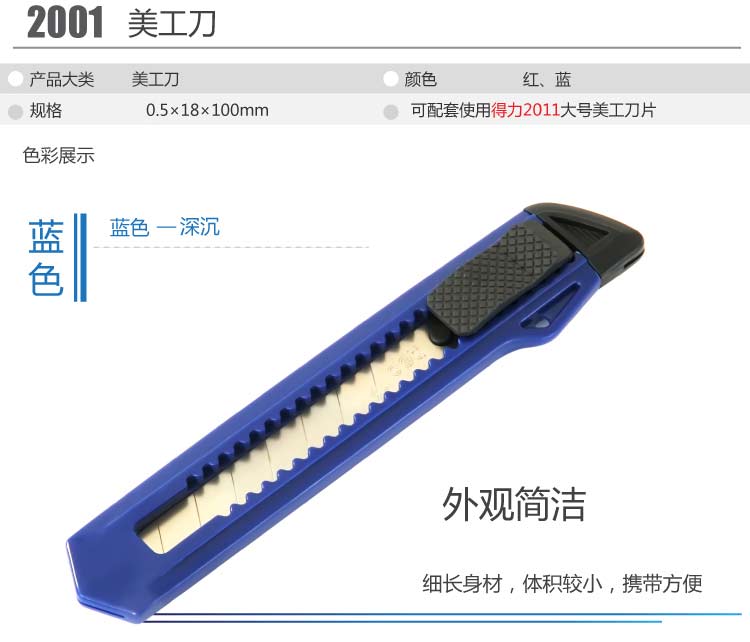 • 商品名稱:得力(deli) 2001 大號(hào)手動(dòng)鎖定美工刀 掛繩孔設(shè)計(jì) 顏色隨機(jī) 辦公用品