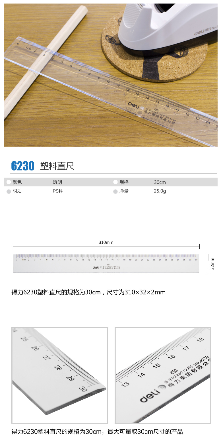 • 商品名稱:得力(deli) 6230 30cm 辦公通用直尺尺子 (kj)
