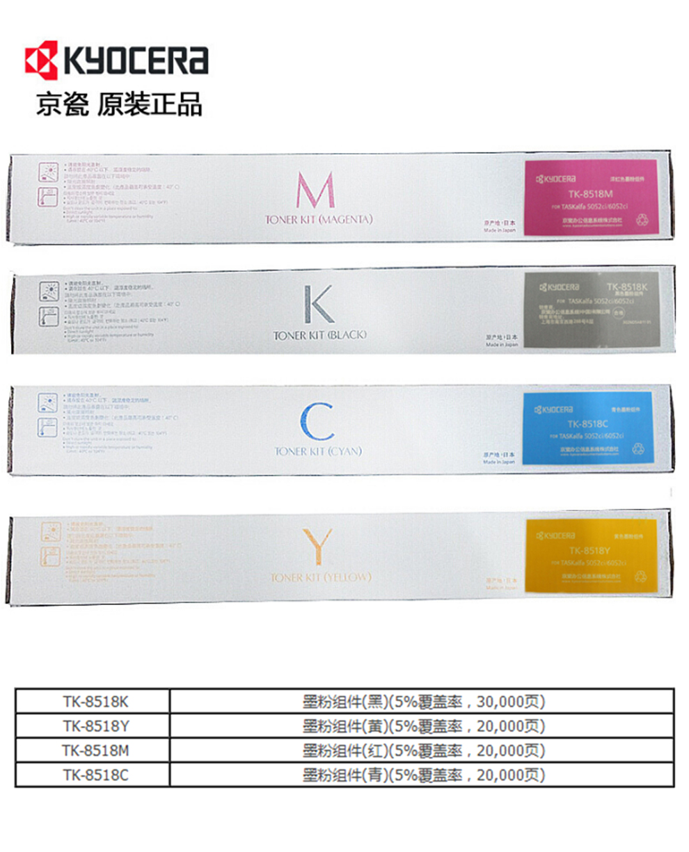 • 商品名稱:京瓷(Kyocera)TK-8518Y 黃色 墨粉 /適用于TASKalfa 5052ci/6052ci