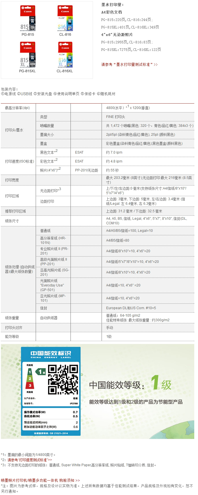 • 打印速度:黑白:7.0ipm 彩色:4.8ipm 照片(4"x6"):55秒