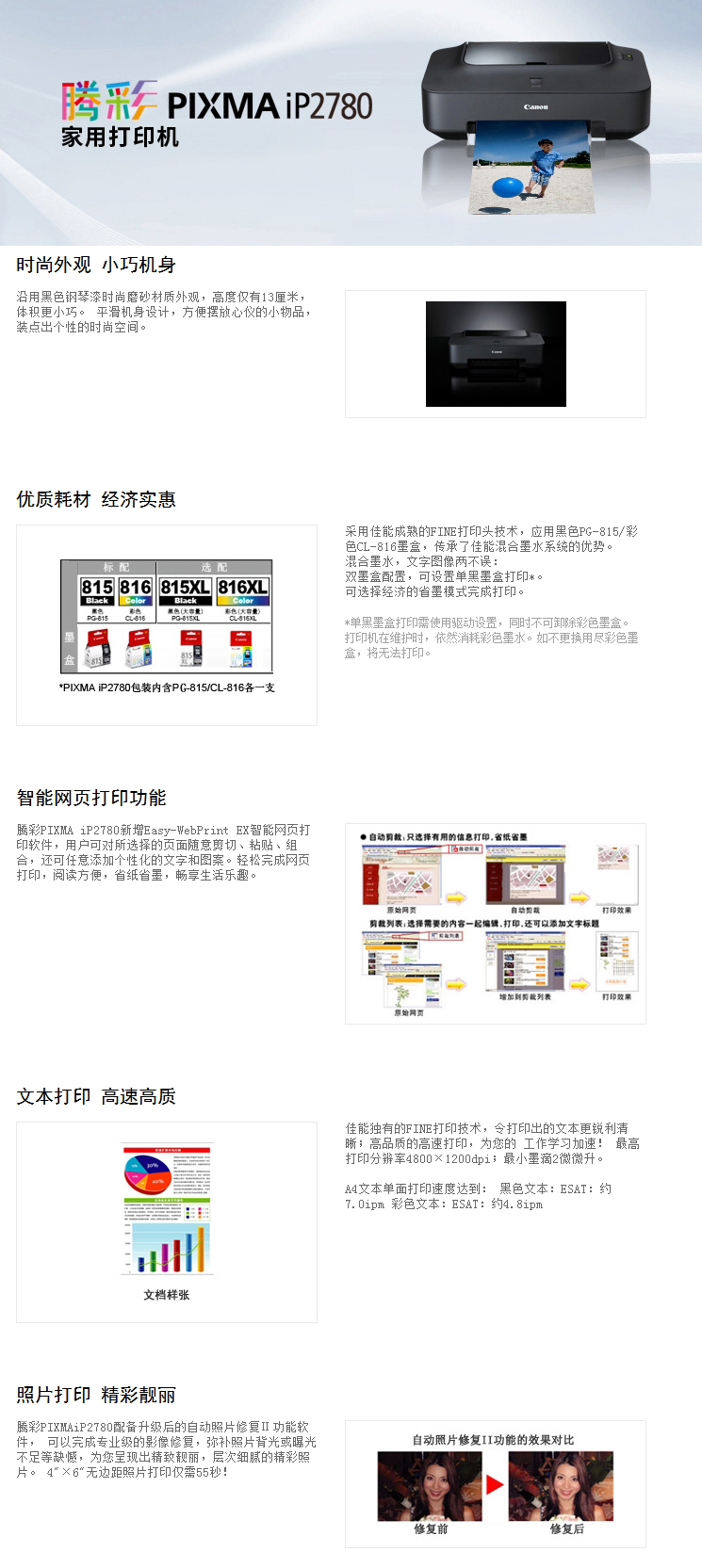 • 商品名稱:佳能(Canon)IP2780 噴墨打印機