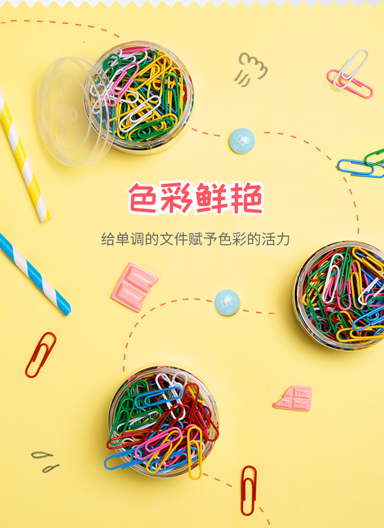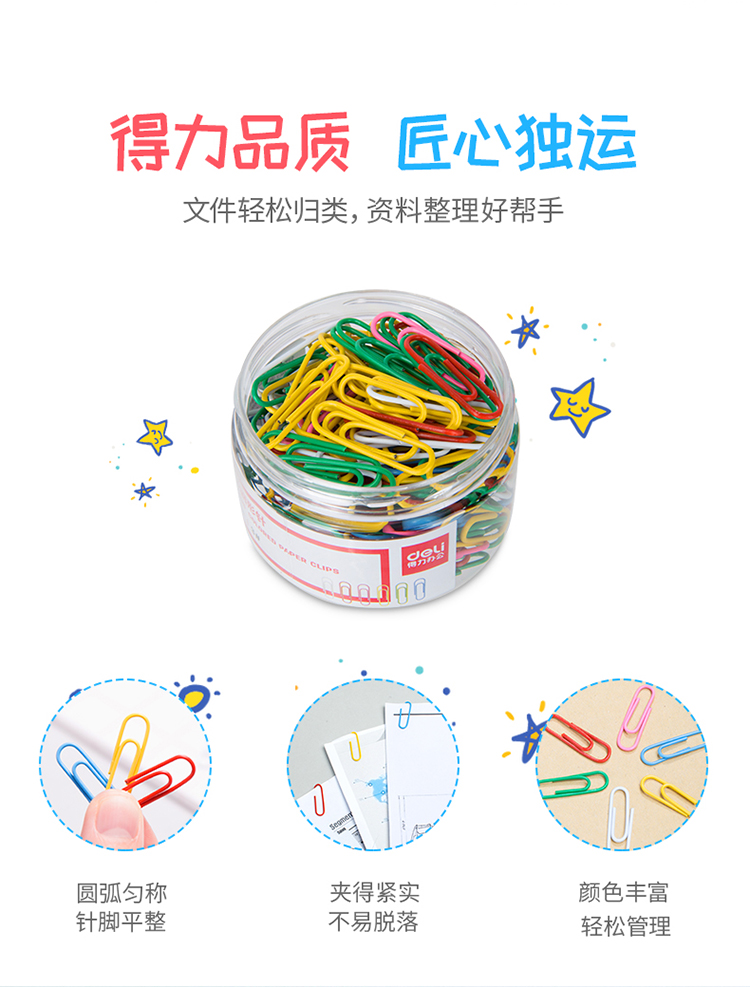 • 商品名稱:得力 回形針 3# 29mm規(guī)格:0038 160枚/筒 彩色 (kj)