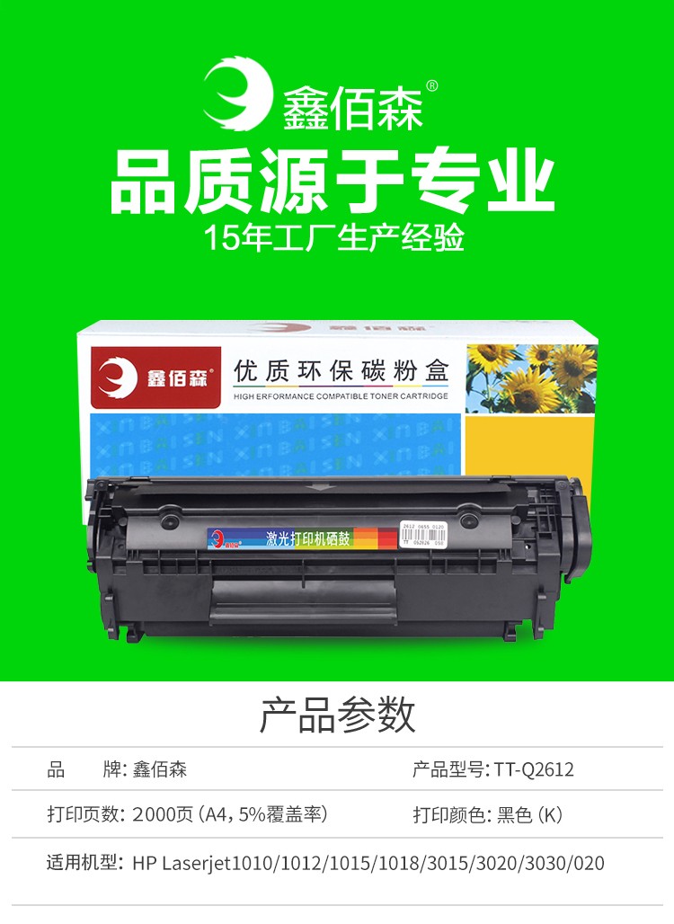 • 商品名稱:鑫佰森 TT-Q2612A 硒鼓黑色 適用惠普 HP 1010 1015 1020 M1005打印機 TT-Q2612A硒鼓