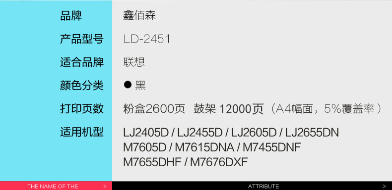 • 商品名稱:鑫佰森 TLD-2451黑色硒鼓 適用于聯(lián)想LJ2605DM7605D/M7615DNAM7 LD-2451黑色硒鼓組件