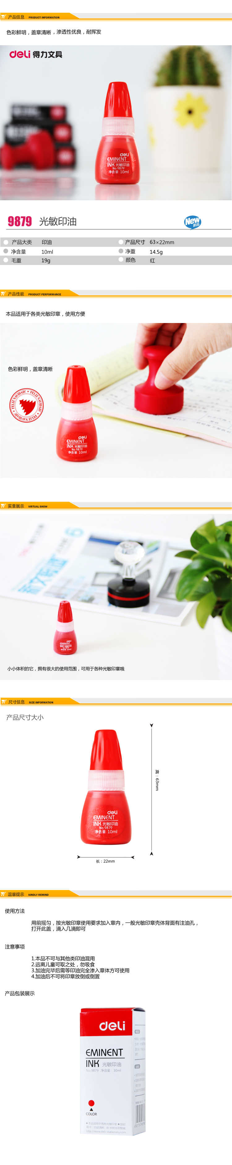 • 商品名稱:得力(Deli) 9879 光敏印油 10ml 紅色