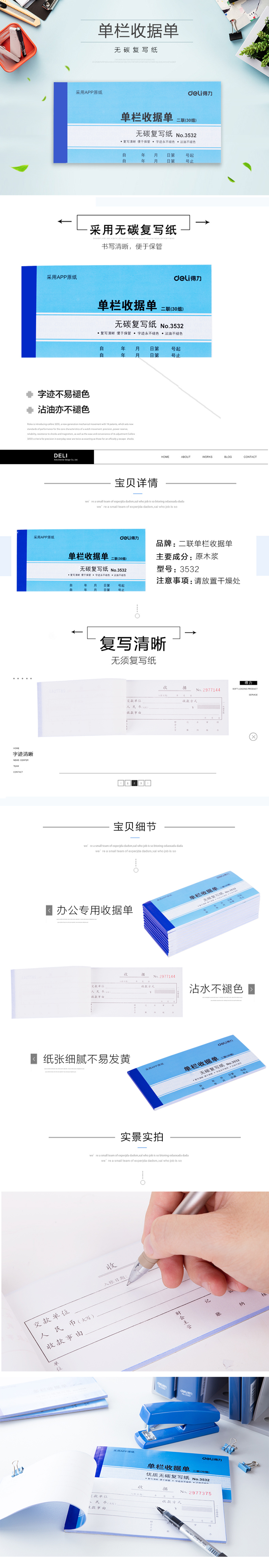 • 商品名稱:得力 無碳復寫 單欄收據(jù) 3532 175*87mm 二聯(lián)(30組) 藍色