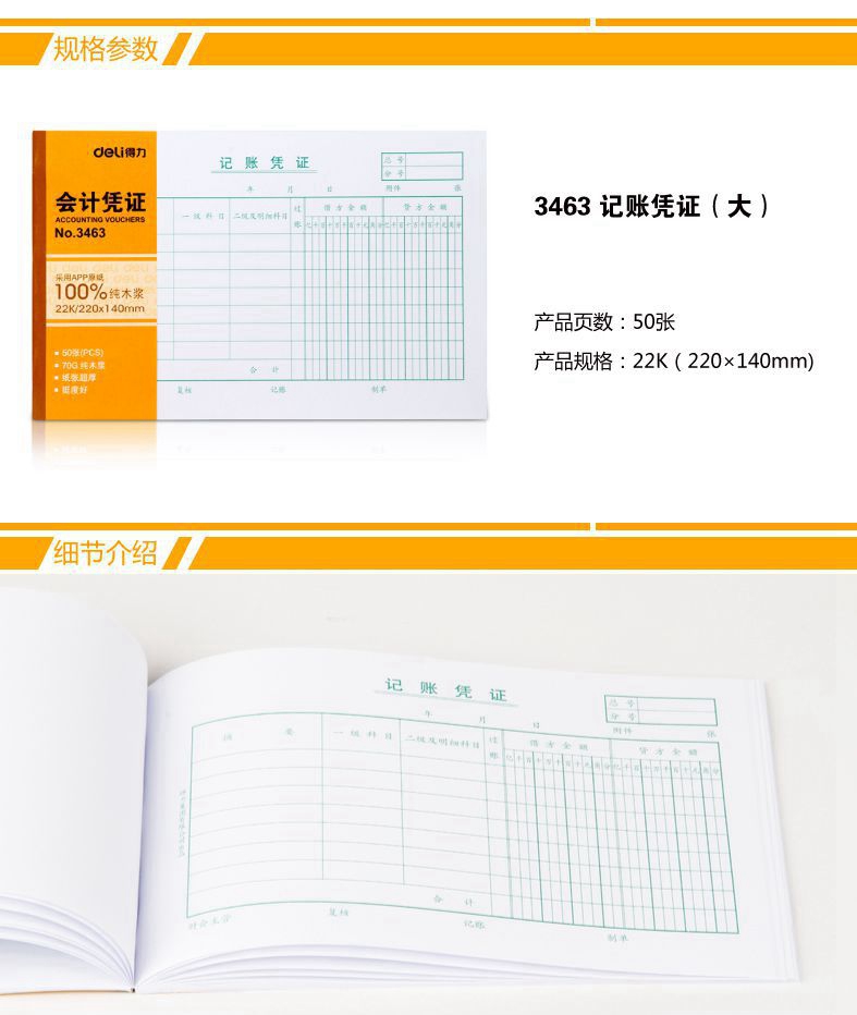 • 商品名稱:得力(deli) 3463 財務單據(jù) 記賬憑證 220140mm