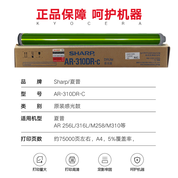 • 商品名稱:夏普(SHARP)AR-310DR-C 黑色感光鼓 適用于AR 256L/316L/M258/310
