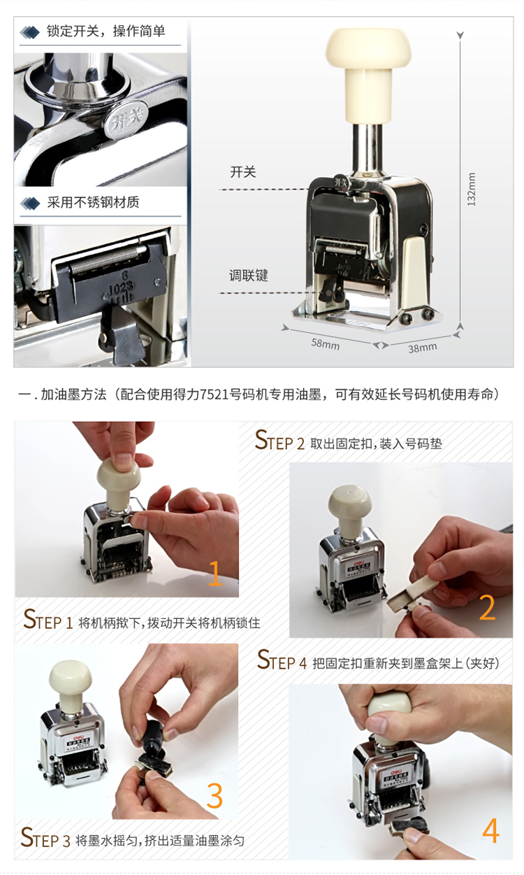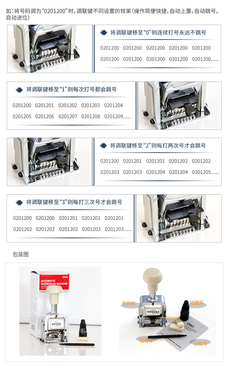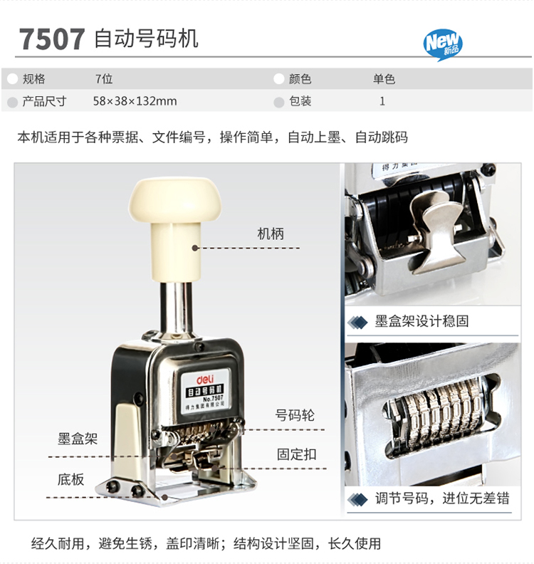 • 商品名稱:得力(deli) 7507 自動號碼機(jī) 手動打碼機(jī)編號打號器頁碼機(jī)日期可調(diào)數(shù)字印章 7位自動號碼機(jī)