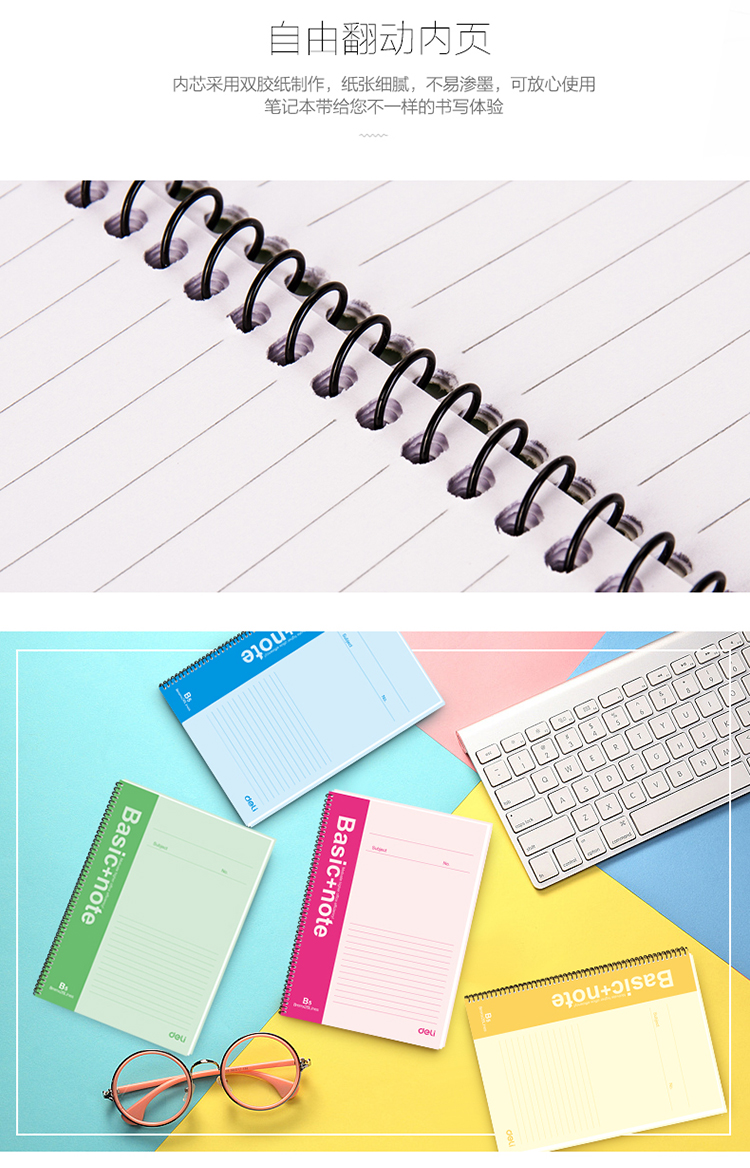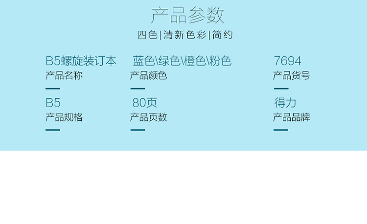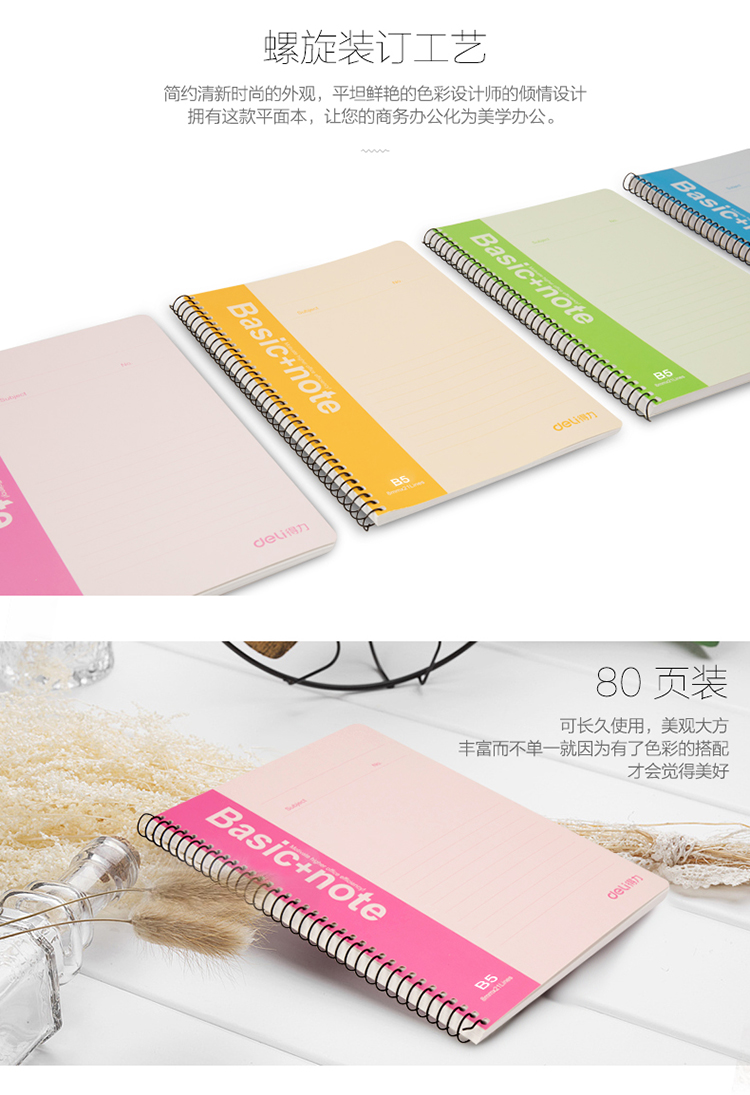 • 商品名稱:得力(deli)B5/80頁螺旋裝訂本軟抄本記事本筆記本子 7694