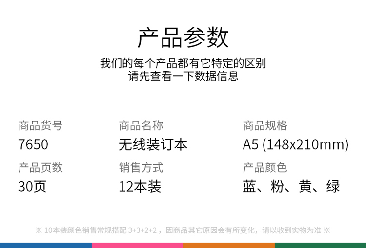 • 商品名稱:得力(deli)A5/30張無線裝訂軟抄本筆記本子 辦公文具記事本7650
