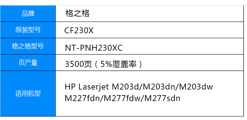格之格 CF230X 硒鼓 NT-PNH230XC 大容量帶芯片粉盒適用惠普 M203 M203dw M203dn M277fdw M277fdn M277sdn (kj)