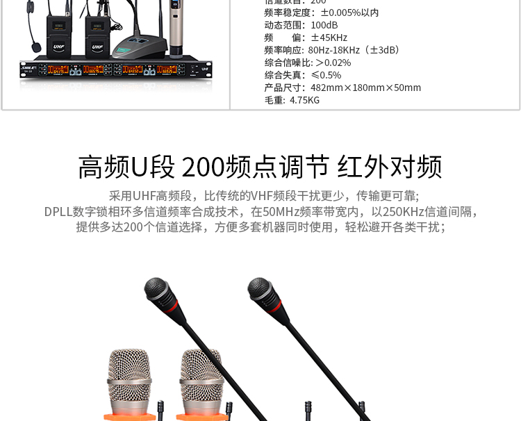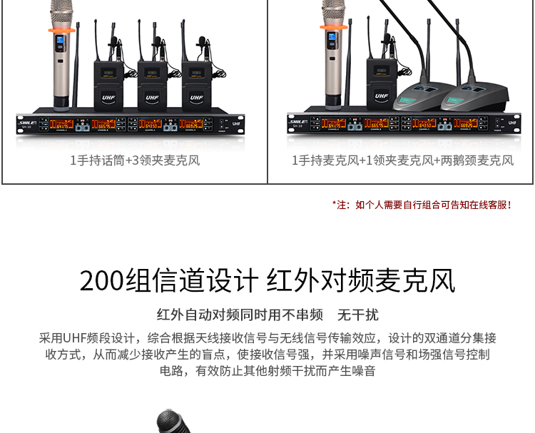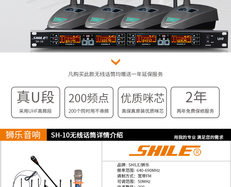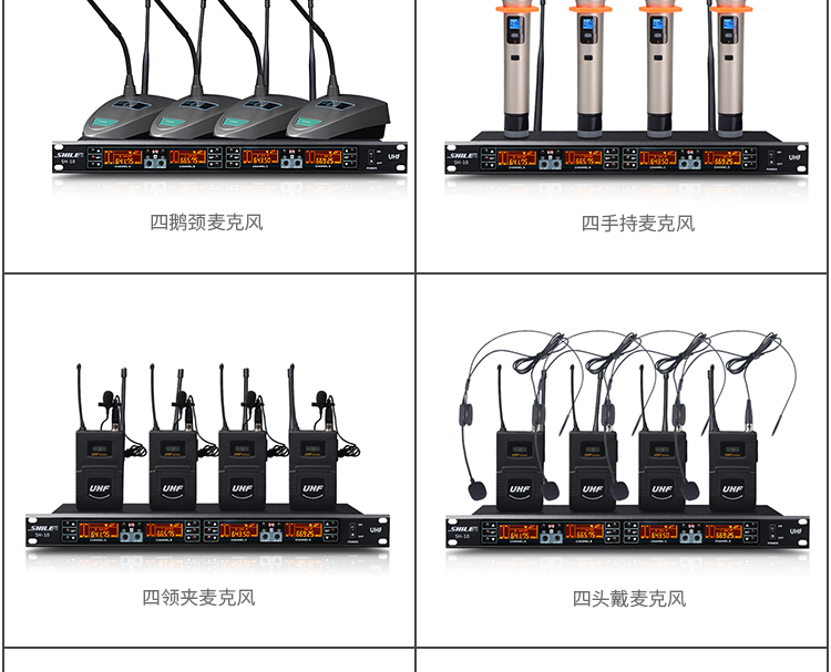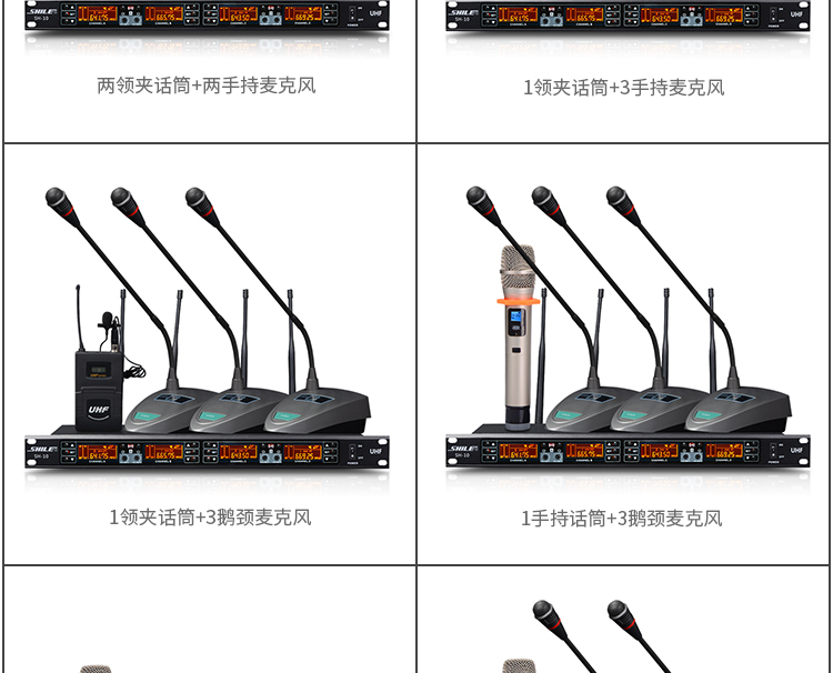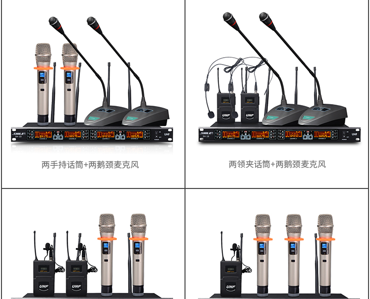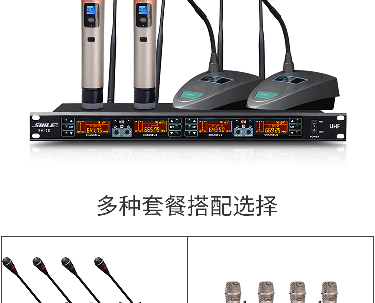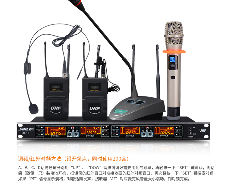 • 商品名稱:獅樂(SHILE)SH10U段無線話筒一拖四會議鵝頸手持頭戴耳麥領(lǐng)夾專業(yè)培訓(xùn)舞臺麥克風(fēng)套裝 主機(jī)+4只鵝頸話筒