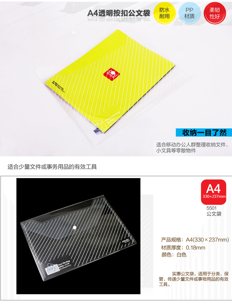 • 型號:得力(Deli)5501 絲印安扣公文袋 A4 白色