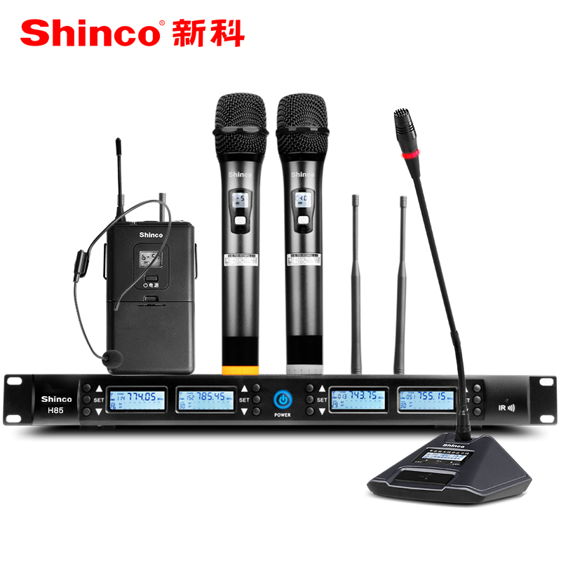 新科 無線話筒H84 ( U段可調(diào)頻無線話筒 一拖四 含接收機(jī)*1/手持麥克風(fēng)*2/鵝勁麥克風(fēng)*1/無線頭戴麥克風(fēng)*1)
