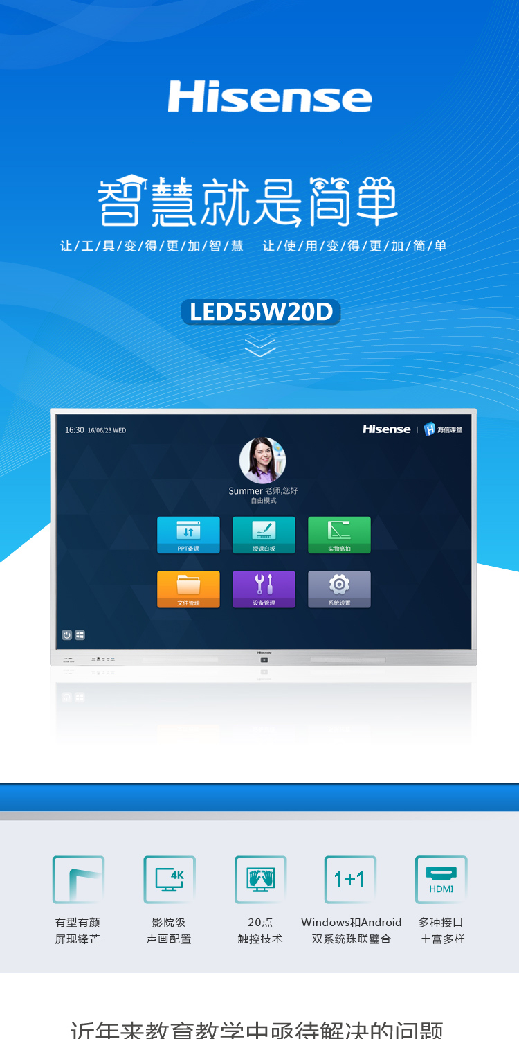 海信(Hisense)LED65W20 65英寸 商用顯示 教育會議平板 含i5