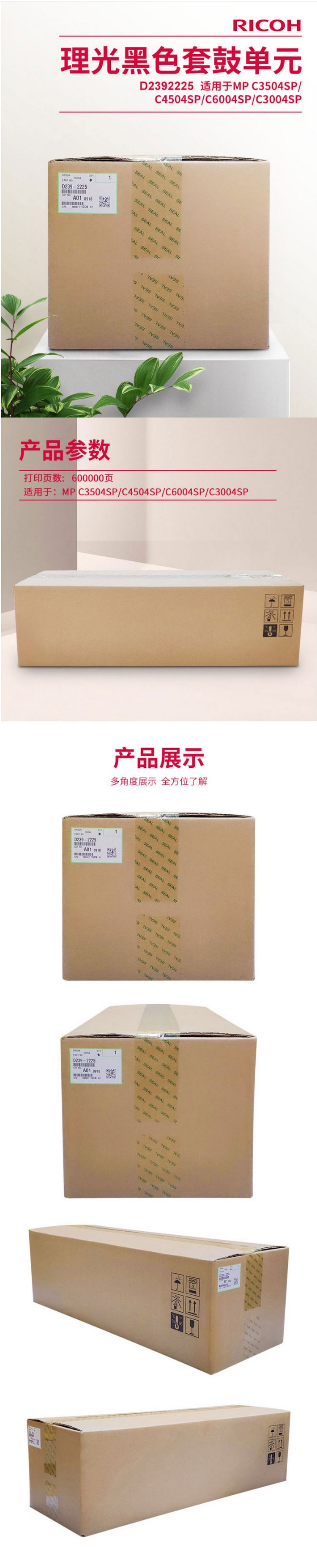• 商品名稱:理光(Ricoh)D2392225黑色套鼓 適用于MP C3504SP/C4504SP/C6004SP/C3004SP