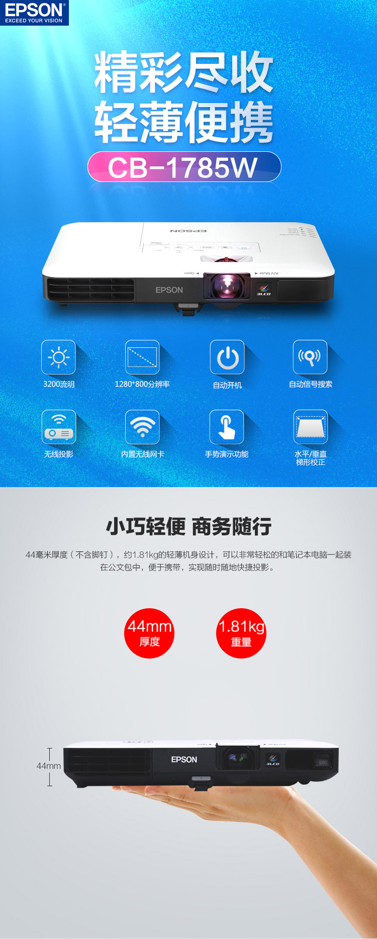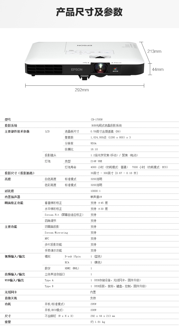 • 商品名稱:愛普生(EPSON) CB-1785W 投影儀 含120寸電動投影幕