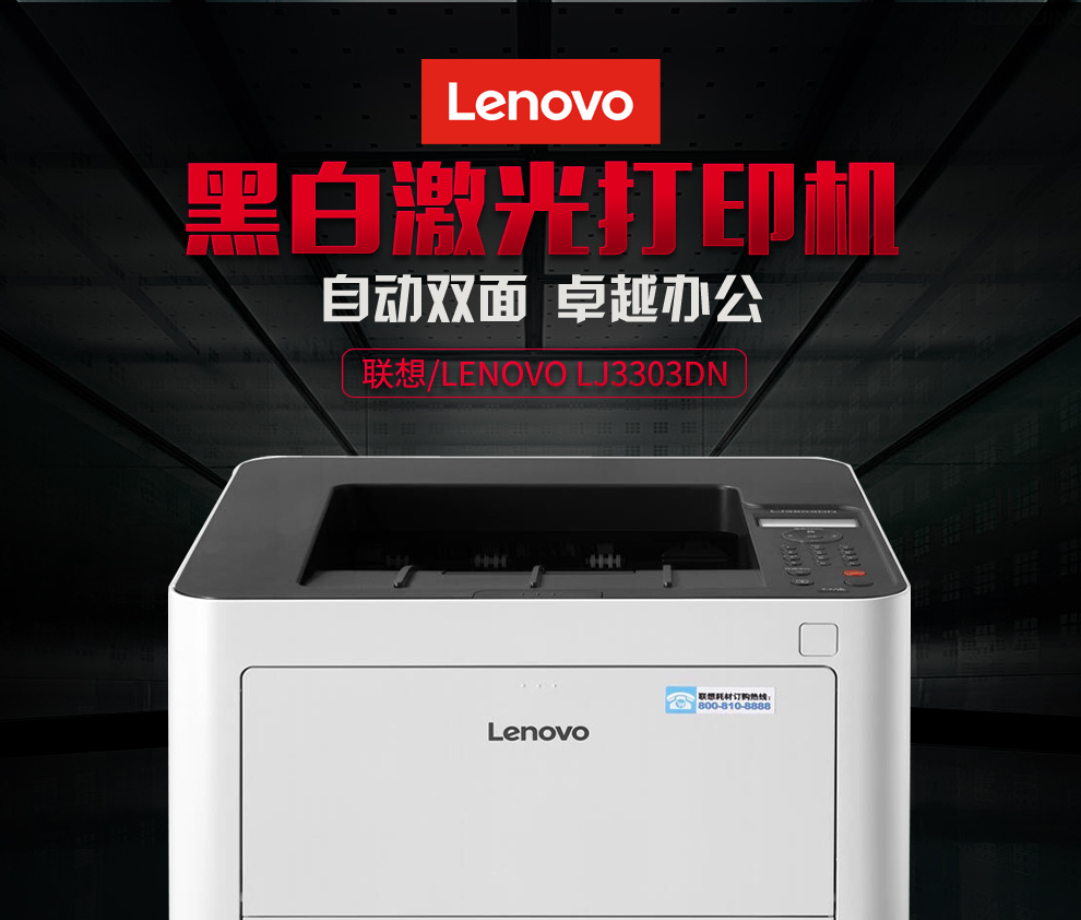 聯(lián)想(Lenovo)LJ3303DN A4黑白激光打印機(jī)/有線網(wǎng)絡(luò)/自動(dòng)雙面(33頁(yè)/分鐘)分辨率:1200×1200dpi 適用型號(hào)LT333/LT333H 粉盒