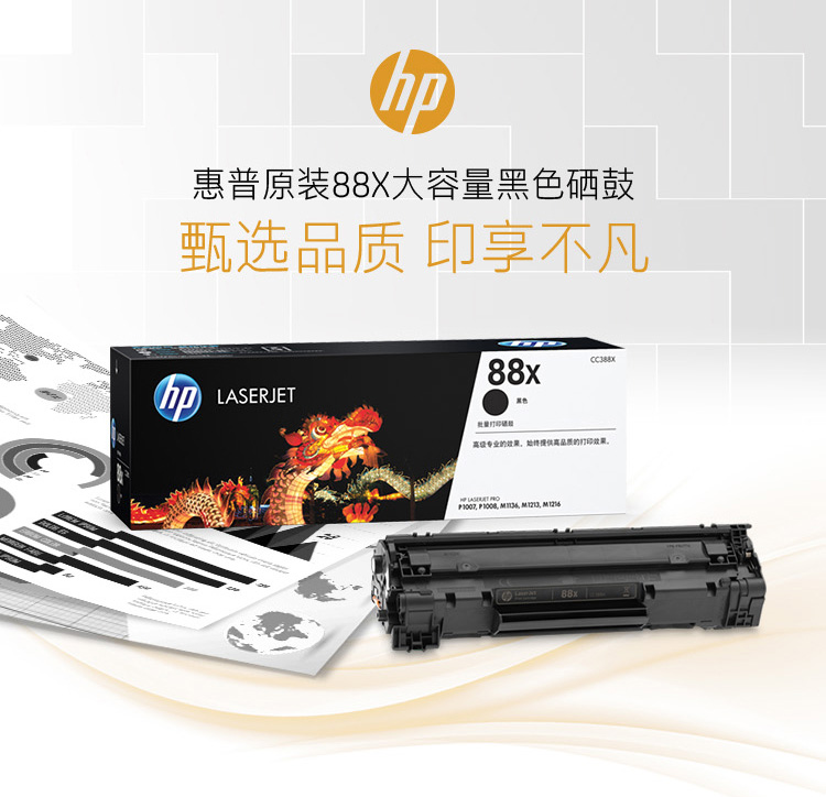 惠普(HP) CC388X 大容量黑色硒鼓 388A 88A 388AD升級版(適用HP M1136/P1108/P1106等)打印頁數(shù)1500頁