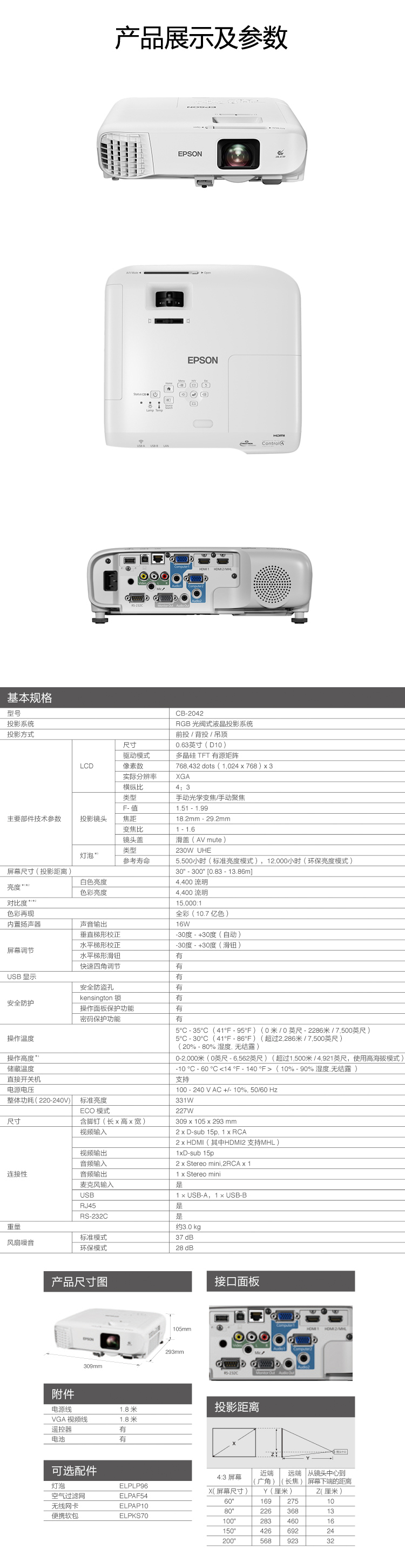 • 商品名稱:愛普生(EPSON)CB-2042 投影儀 商用辦公投影機(jī) 4400流明