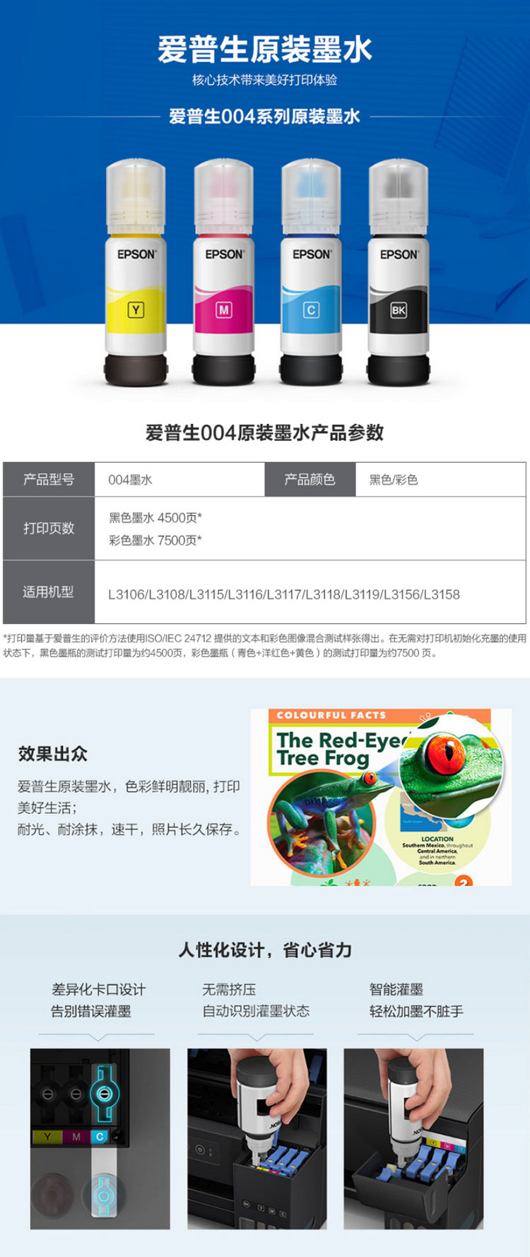 愛普生(EPSON)004黃色墨水 適用于L3118/L3119/L3158