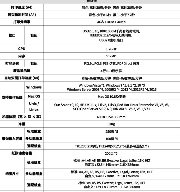 • 打印類型:彩色激光