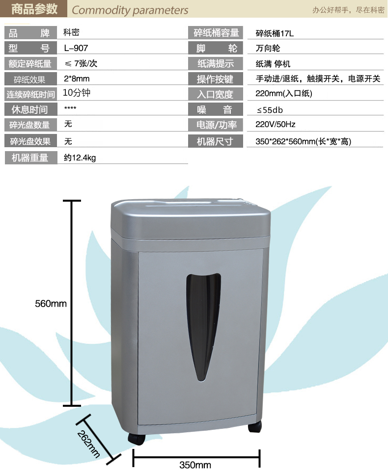 • 商品名稱:科密(COMET) L-907 碎紙機