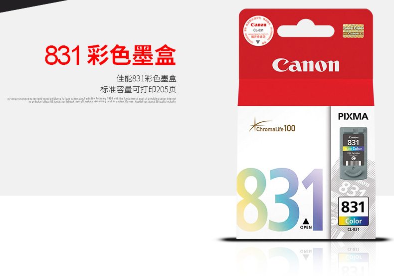 • 商品名稱:佳能原裝 CL-831 墨盒 適用于 IP1180 IP1980 IP2580 IP2680 MP145 MP198 標準容量彩色 可打印205頁(kj)