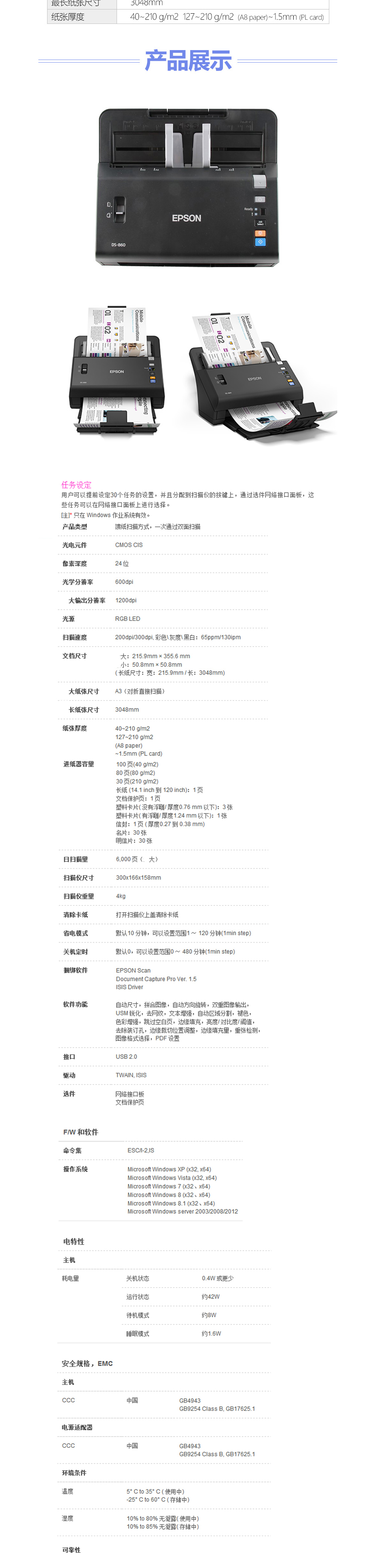 • 商品名稱:愛普生(EPSON)DS-860 A4饋紙式高速彩色文檔掃描儀
