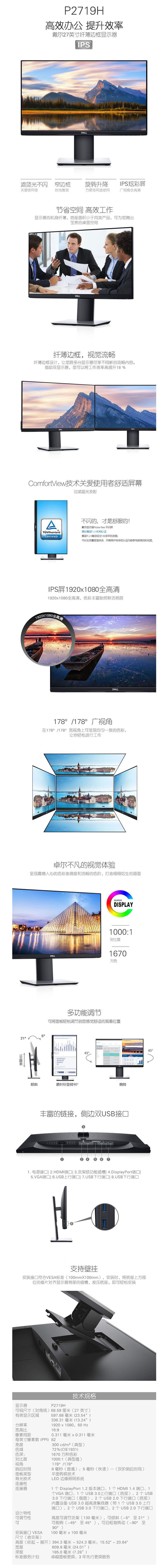 • 商品名稱:戴爾(DELL)P2719H 顯示器 27英寸微邊框 IPS屏