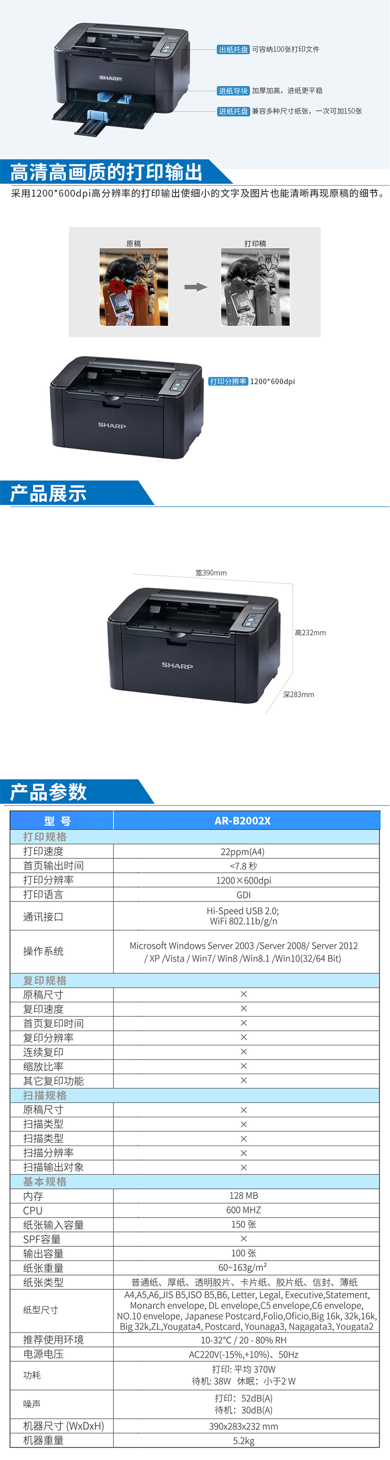- 商品名稱:夏普(SHARP)AR-B2202P A4黑白激光打印機(jī) 支持無線打印