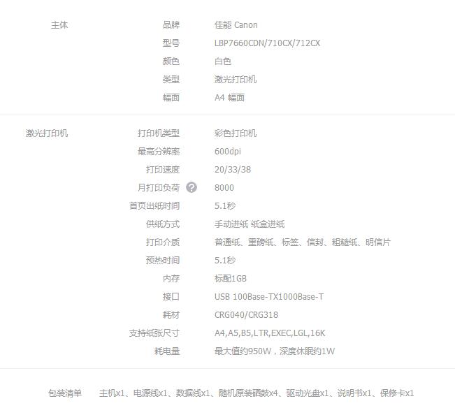 • 商品名稱:佳能(Canon)LBP710cx彩色激光打印機(jī)