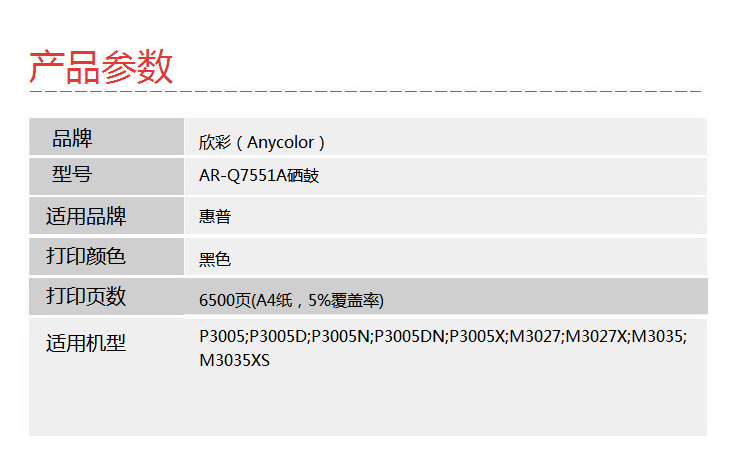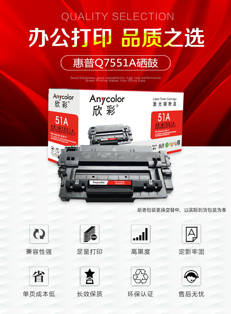 欣彩(Anycolor)Q7551A硒鼓(專業(yè)版)AR-Q7551A 51A適用于惠普HP P3005 P3005d 3005dn M3027MFP M3027xMFP