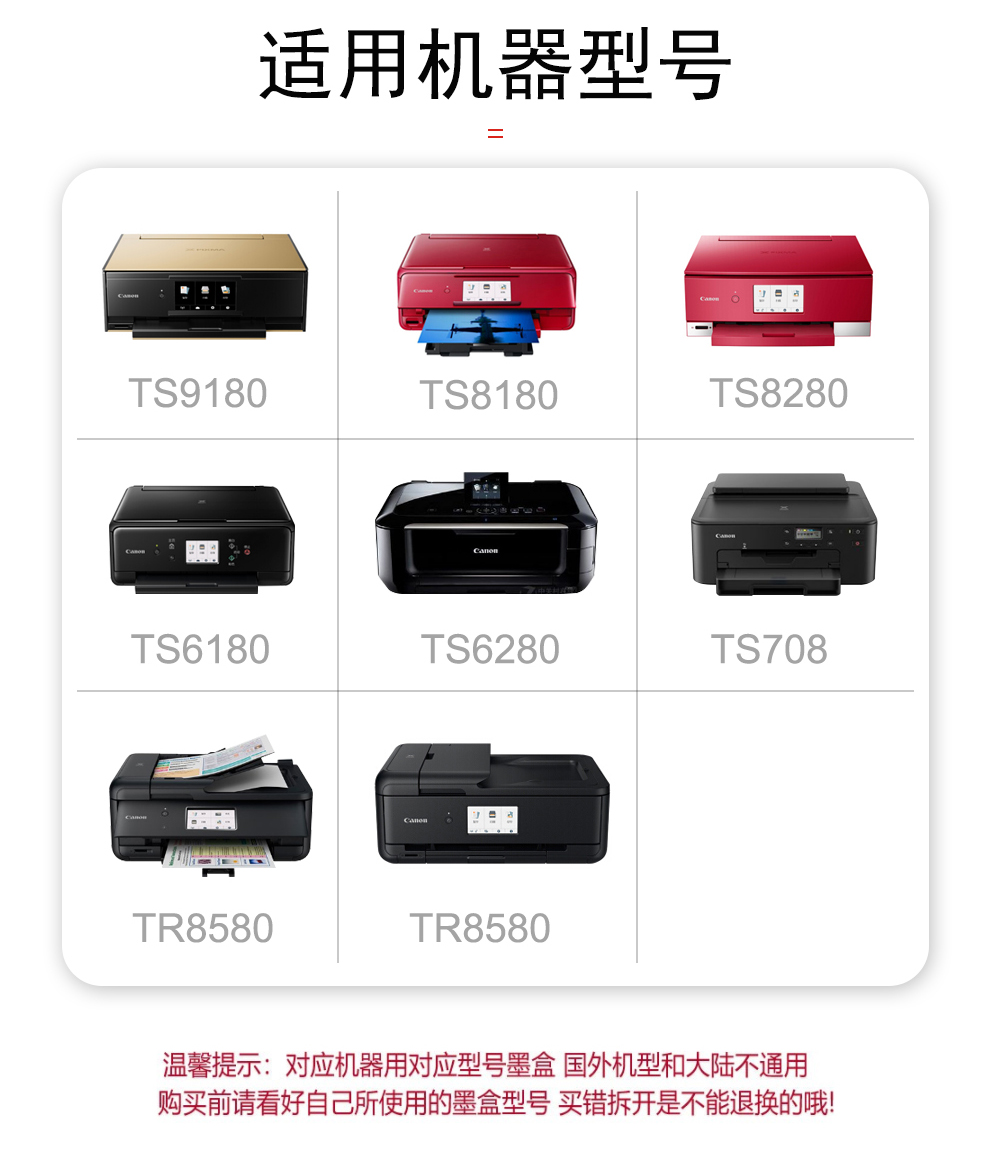 • 適用機(jī)型:佳能 TS-9180/TA-8180/TS-8280/TS-6180/TS-6280/TS-708/TR-8580