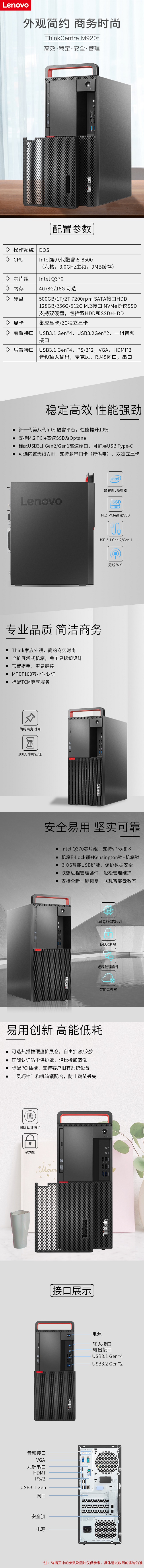 聯(lián)想(Lenovo)ThinkCentre M920t-D368 單主機(jī)i7-8700/8GB內(nèi)存/1TB+128GB/ DVDRW/集顯/DOS/原廠五年標(biāo)準(zhǔn)保修 原廠三年硬盤不回收