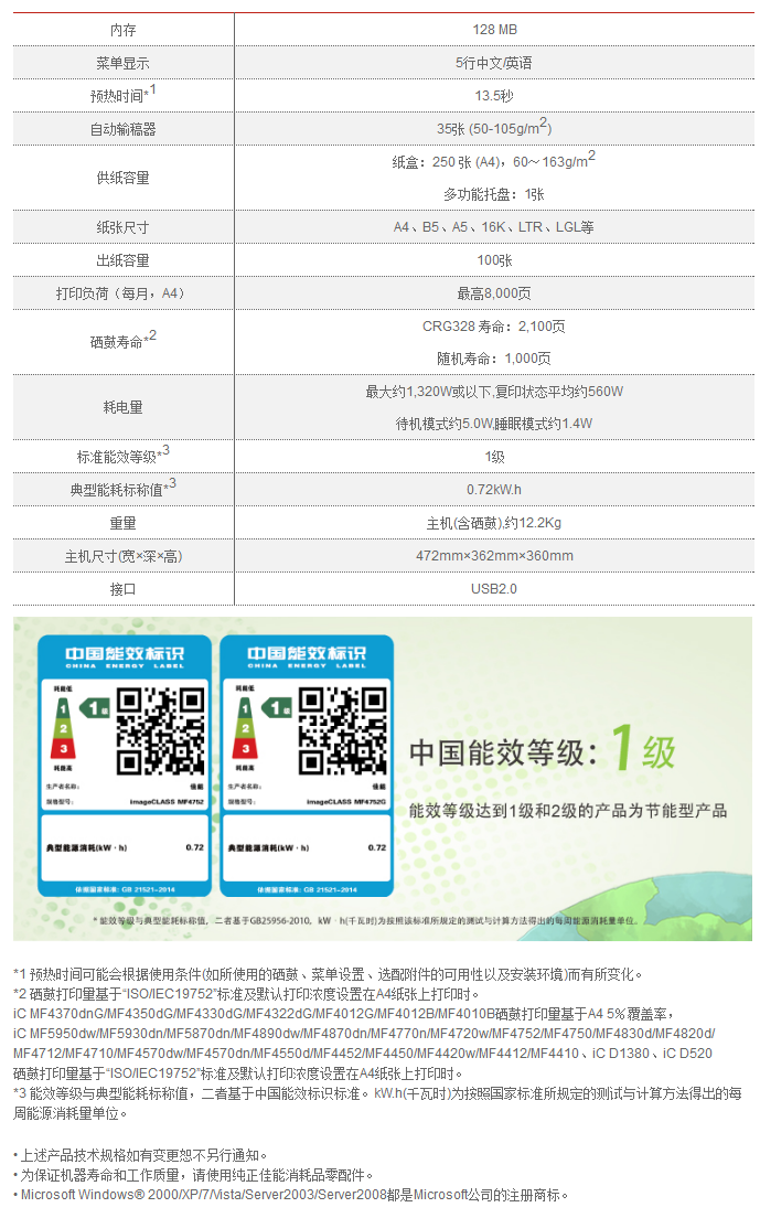 • 商品名稱:佳能(Canon)MF4752黑白激光多功能一體機