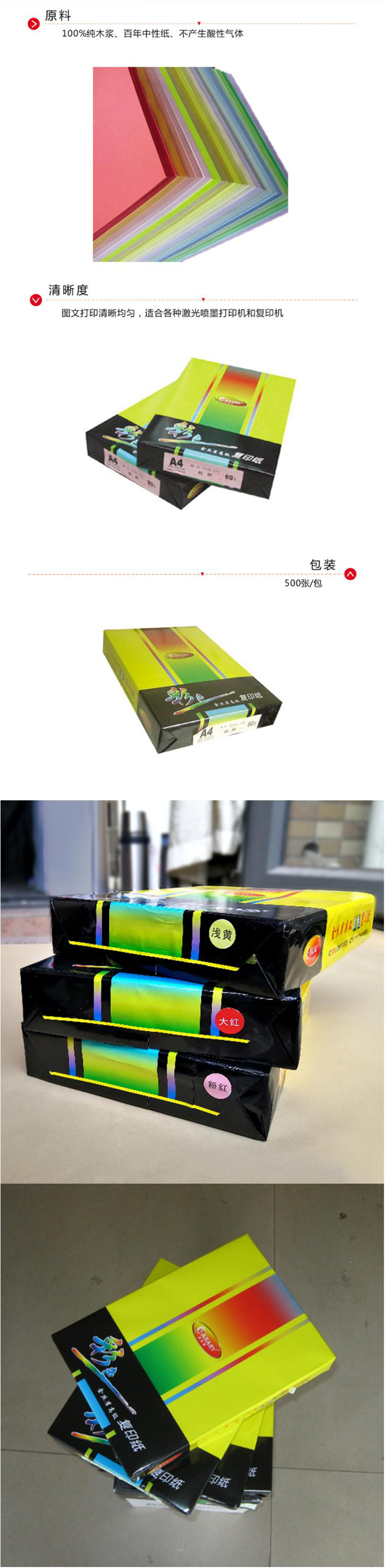 • 商品名稱:金絲雀 A4 80g 彩色復(fù)印紙 500張/包 5包/箱 淺黃色