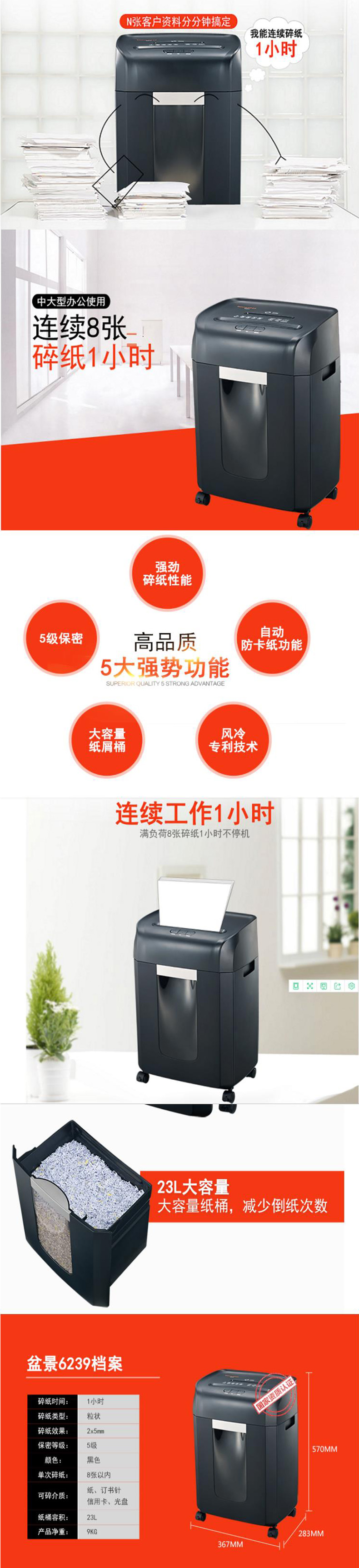 - 商品名稱:盆景碎紙機(jī) 6239 黑色 臺(tái) 碎紙8張/保密等級(jí)5級(jí)/23L (kj)