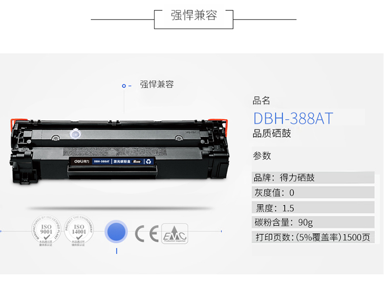 • 商品名稱:得力(deli)DBH-388AT易加粉硒鼓/激光碳粉盒 388A 88A硒鼓(適用惠普HP P1007/P1008/P1106/P1108/M1136/M1213nf/M1216nfh)(kj)