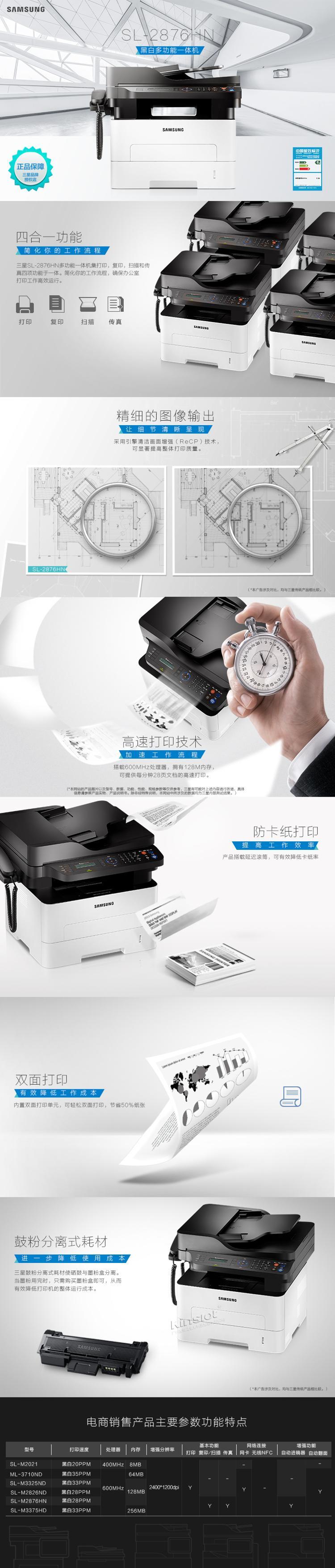 • 商品名稱:三星(SAMSUNG) SL-M2876HN打印復(fù)印掃描傳真激光一體機(jī)