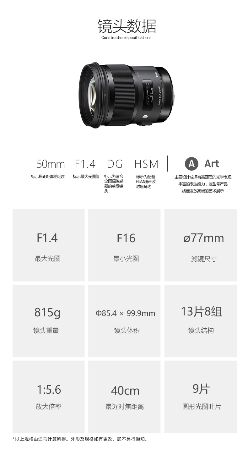 • 商品名稱(chēng):適馬(SIGMA)ART 50mm F1.4 DG HSM 全畫(huà)幅 大光圈標(biāo)準(zhǔn)定焦鏡頭 人像肖像(佳能單反卡口)
