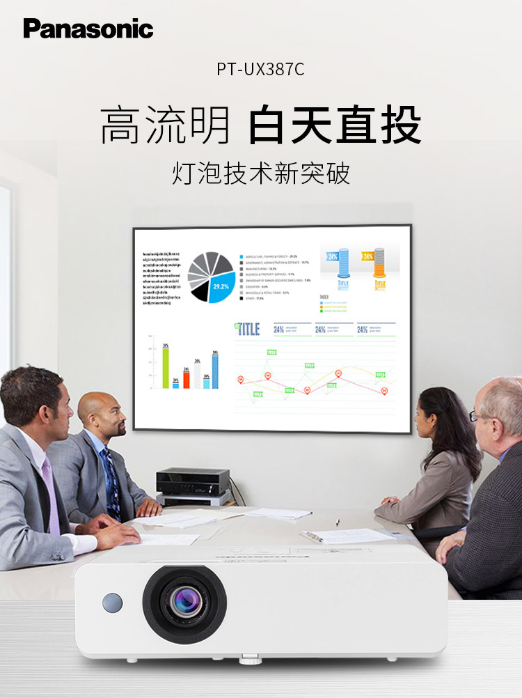 松下(Panasonic)PT-UX387C 投影儀 3800光亮度/1024*768分辨率/16000:1對比度 最大300英寸顯示 整機(jī)兩年保修 燈泡半年保修